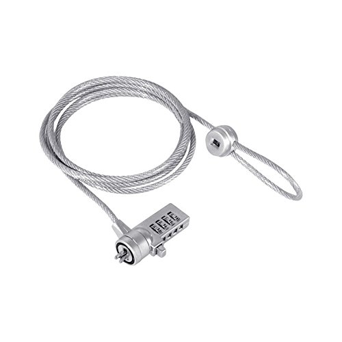 -. Feature : Four digit resettable combination / 3mm plastic cover / 6ft length / Attaches to the security slot found in most laptop computers with disk drives