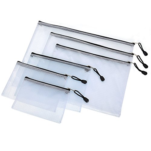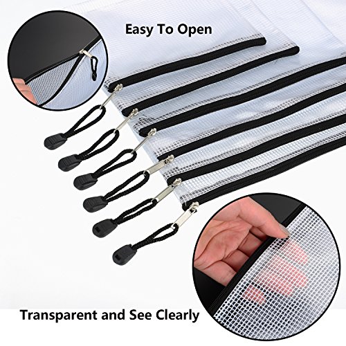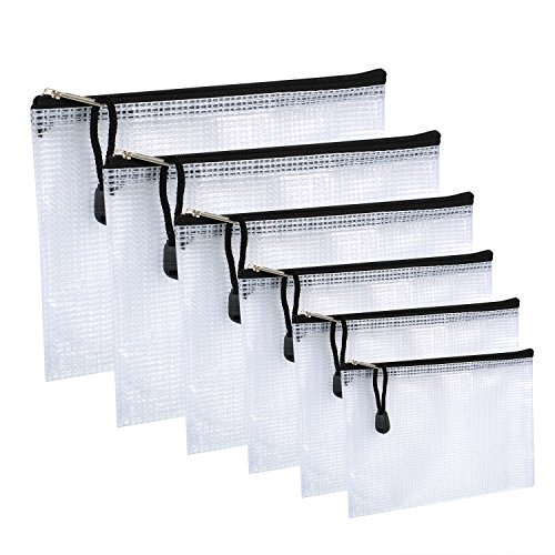 eBoot 6 Pieces Multi-size Zipper File Bags Paper Document Bag Mesh Documents Pouches with Cleaning Cloth for Organize Supplies, Cosmetics, Travel Accessories