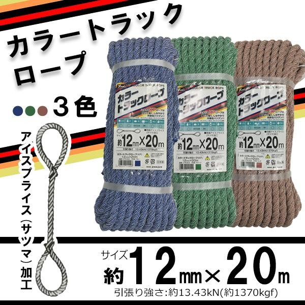 | 軽くて丈夫☆軽トラックなどで荷物を運ぶ際に欠かせないトラックロープです。ロープの両端はアイスプライス(サツマ)加工になっています。 |