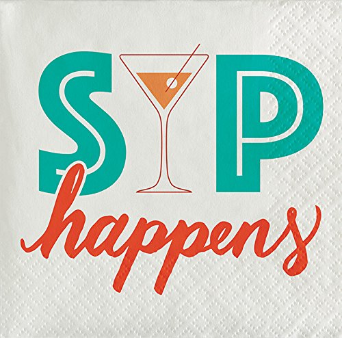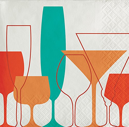 -. Feature : Bundle of 3 Packets of 3-ply beverage napkins made of premium facial quality paper napkin tissue / 24 Napkins in each packet for a total of 72 beverage napkins / 1 Packet of each pattern of Retro Cocktails Collection: Circles, Sip Happens, and Glasses / Folded napkins are 5" x 5" / Made in the USA using water-based inks