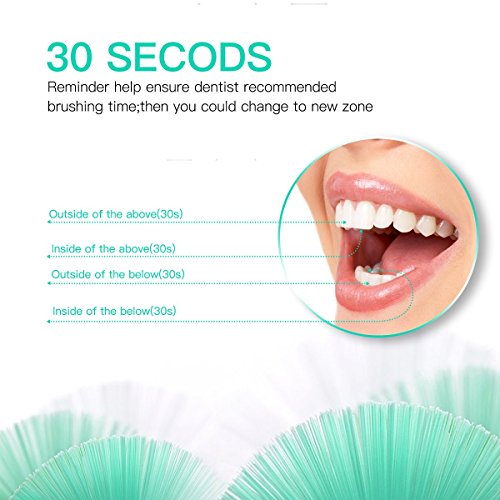 HIGH CAPACITY RECHARGEABLE BATTERY:One full charge via USB outlet with 6 hours can last 100 days for twice brushing per day, with low battery reminding. Smart timer encourages 2 minutes with a reminder every 30 seconds of brushing as recommended by dentists.