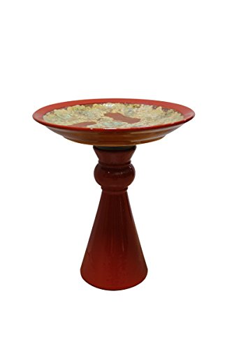 Plutus Brands 16 Inch Red Ceramic Bird Bath