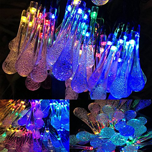 Solar Outdoor String Lights (8 Modes 1200mAh) with USB Port 30 LED 20 ft Waterproof Decorative Fairy Lights for Halloween,Parties,Christmas Water Drop Lights