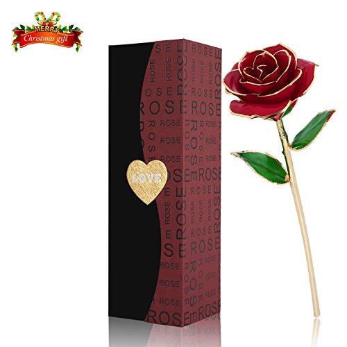 Love Forever Long Stem Gold Foil Trim Red Rose Flower