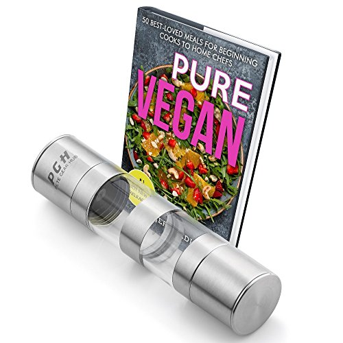 Salt and Pepper Grinder 2 in 1 Manual by PGH - Pepper Mill with Adjustable Ceramic Mechanism – with 50 Recipe eBook