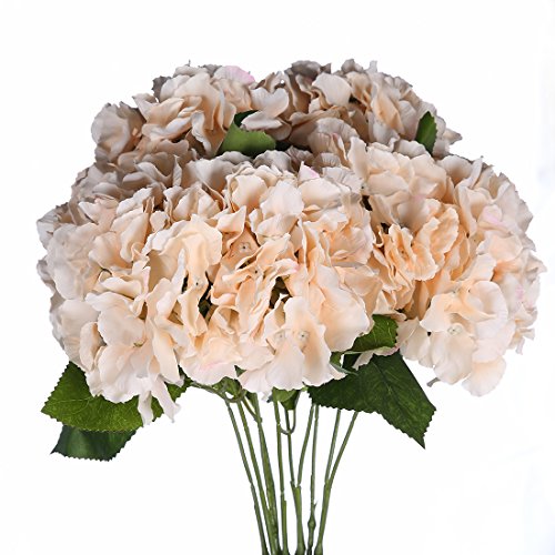 Veryhome 2pcs 5 Heads Artificial Hydrangea Flowers Silk Bouquet for Party Wedding Home Decor (champagne)