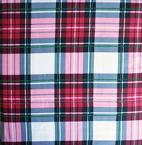 - Classic plaid pattern in shades of red, black, green and white stripes