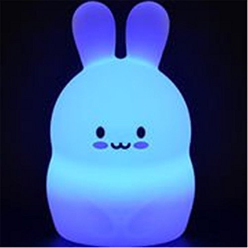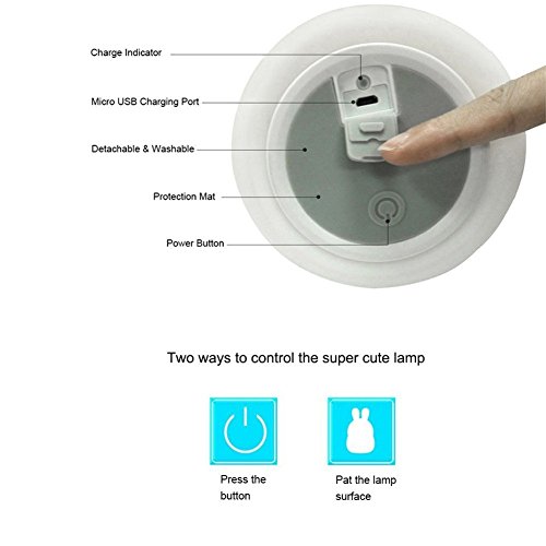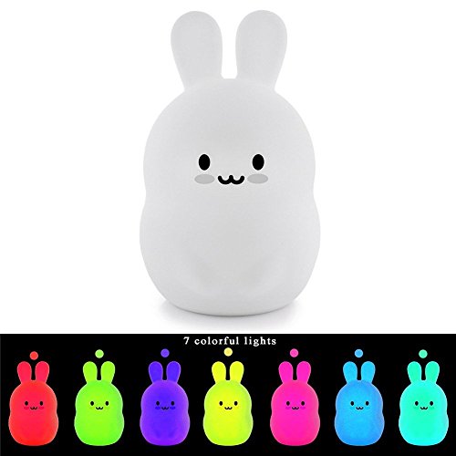 - Gentle and Calming mood lighting and TAP control for relaxed bedtime experience - cycle through different modes simply by tapping the soft silicone rabbit,through all the colors or pause on your favorite color.