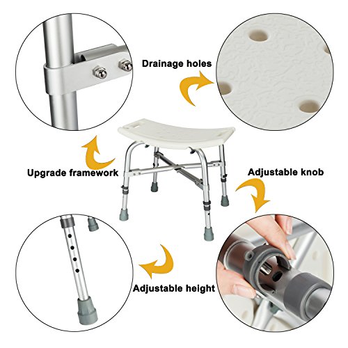 For the old, the pregnant or disabled persons, this Mefeir?Heavy Type?Adjustable Aluminum Alloy Shower Chair is really a helper! It could make great convenience for anyone who is difficult in bathing. This shower chair is easy to assemble. Adopting high-grade plastic and aluminum alloy, this chair is durable and can bear up to 450lbs weight. It is an adjustable gadget that can fully meet different needs. Simple but fashionable, this bathing chair is worthy of your buying!] Features: 1. High quality and good strength with premium materials 2. With the maximum bearing capacity up to 450lbs 3. Hollow-out chair surface, with excellent breathability 4. The height of this chair can be randomly adjusted 5. Suitable for the old, pregnant or disabled people Specifications: 1. Brand: Mefeir 2. Material: Plastic Aluminum Alloy 3. Color: White 4. Dimensions: (20.07 x 12 x 19.09)" / (51 x 30.5 x 48.5)cm (L x W x H) 5. Adjustable Height: (14.17~19.09)" / (36~48.5)cm 6. Weight: 4.72 lbs / 2.14 kg 7. Weight Capacity: 450 lbs ? Package Includes: 1 x Bath Chair 0