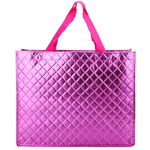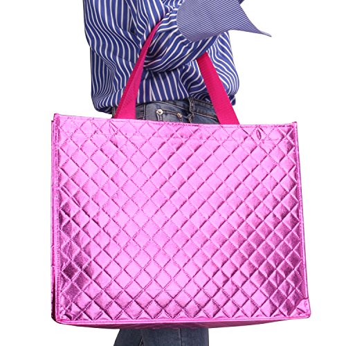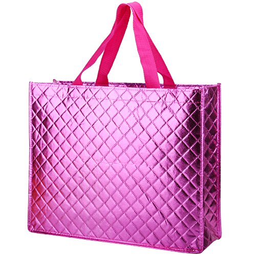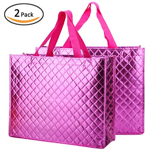 Rumcent Bling Bling Glossy Reusable Tote Bag, Chic Square Design Grocery Bag, Thicker Non-woven Fabrics For Shopping, Travel, Daily Use, Picnic- 2 Packs/Set - rose