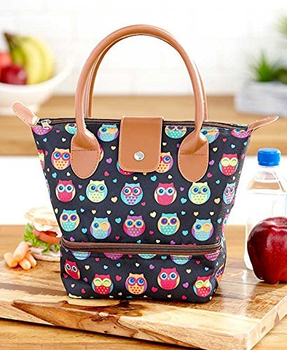 Dual Compartment Insulated Lunch Tote (Rainbow Owl)
