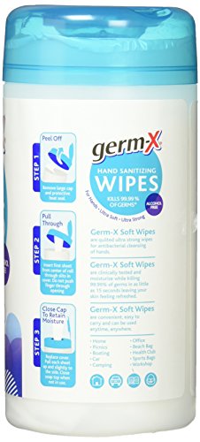 Our Germ-X Antibacterial Hand Wipes Canister gives you the benefits of a hand sanitizer with the cleaning convenience of soft wipes. Just pop open the lid and pull out one of our ultra soft, ultra strong wipes, for a convenient cleaning solution. The mild BZK formula with Vitamin E is alcohol-free, so it is gentle enough for hands and faces (even little ones).Feature