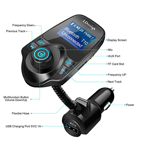 Bluetooth FM Transmitter, LDesign Universal Wireless Radio Car Kit USB Charging Hands-Free Calling
