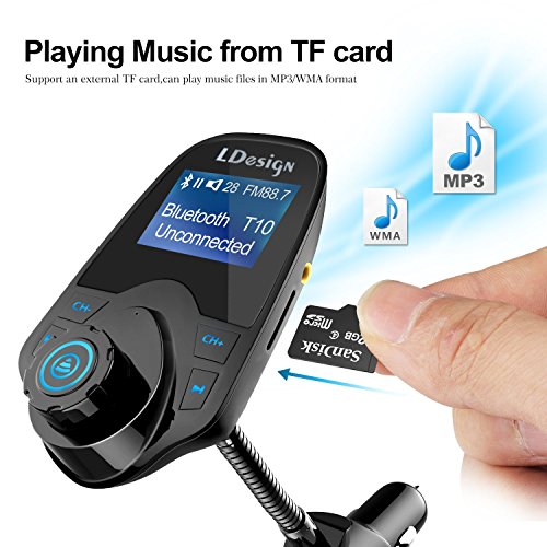 Bluetooth FM Transmitter: A car MP3 player with Bluetooth car kit, which can transmit audio /music from TF card and cell phones to car FM stereo system; with Bluetooth A2DP streaming function.