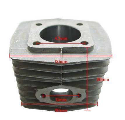 -. Feature : Cylinder 49cc 50cc Gas Motorized Bicycle Dirt Bike Scooter Engine Parts / Size: Inner diameter: 40mm(Intake stud spacing) / Hole distance: 35mm / Weight: 510g / Package Includes:1 x Cylinder Body & 1 x Gasket