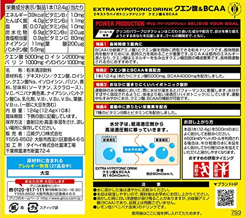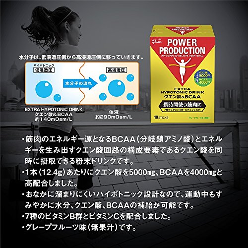 長時間使う筋肉に。BCAA(分岐鎖アミノ酸)とクエン酸を同時に摂取できる粉末ドリンクです。長時間筋肉を動かすためには、筋持久力を高めることが重要です。BCAAは筋肉のエネルギー源となり、クエン酸はエネルギーを生み出すクエン酸回路の構成要素です。長時間運動される方におすすめです。クエン酸とBCAAを高配合。1本(12.4g)あたりにクエン酸5000㎎、BCAA4000㎎を配合しました。おなかに溜まりにくいハイポトニック設計運動時の水分補給において、胃に水分が溜まるとパフォーマンスに影響します。水分がすばやく吸収されるように、体液より低い浸透圧(ハイポトニック)にしています。運動中もすみやかにエネルギー、水分、ミネラルの補給が可能です。運動中に摂りたい栄養素を配合7種のビタミンB群とビタミンCを配合しました。
