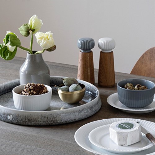 Contemporary design salt mill / salt grinder with an oak body and porcelain knob. Kahler also produces two matching pepper mills with light and dark gray knobs (sold separately and subject to availability).