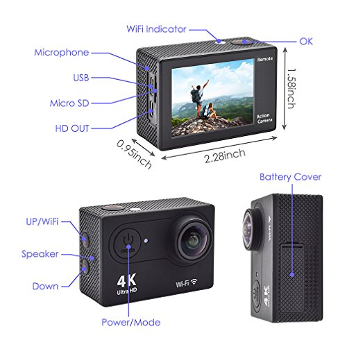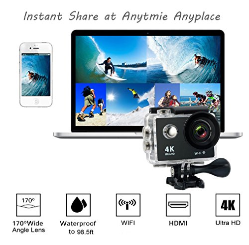 Ultra HD 4K Action Camera - Professional 4K@25fps & 2.7K@30fps & 1080p@60fps & 720p@120fps video with 12MP photos at up to 30 frames per second for incredible photos, which is 4 times the resolution of traditional HD cameras. Allows you to shoot high quality pictures and videos.