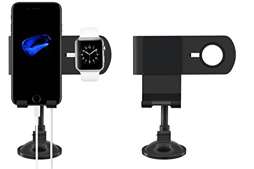 Dual Car Mount: Compatible with your iPhone 5/5s/6/6 Plus/6s/6s Plus/7/7 Plus and iWatch. Easy to mount on your windshield or dashboard with sticky suction base.