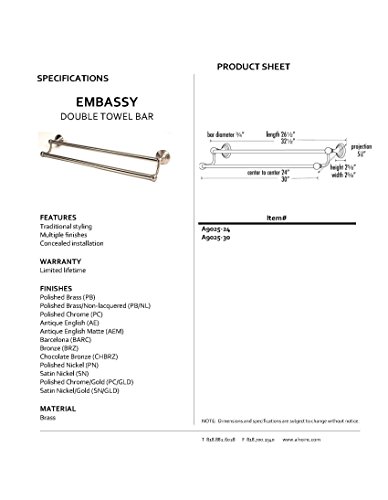 Alno A9025-30-PN Embassy Double Traditional Towel Bars, Polished Nickel
