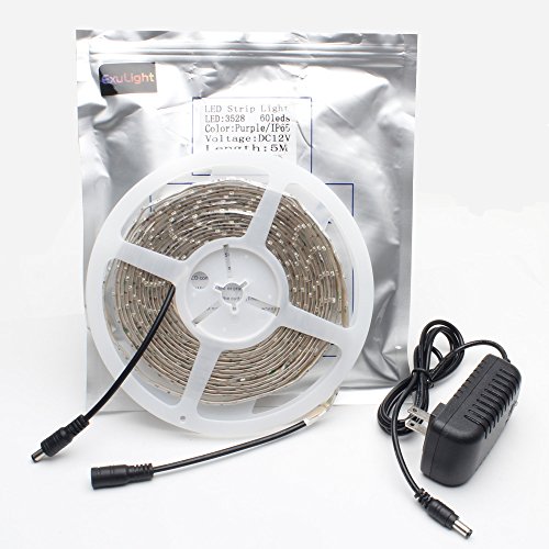 Exulight UV Blacklights LED Light Strip 5M/16.4ft 3528SMD Waterproof 300LED with 12V 2A Power Supply (Purple)