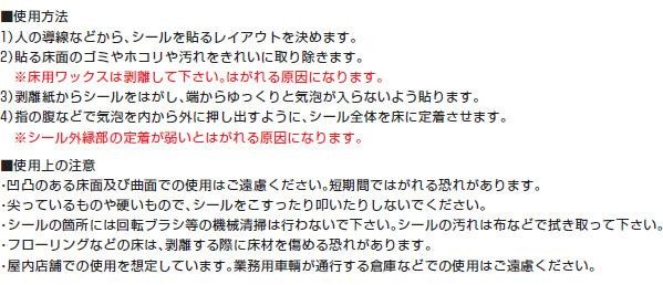 ガラスコーティングフィルムを表面にラミネートした、耐久性抜群のフロア誘導シールです。コンビニ・ドラッグストアなど、屋内の行列のできるあらゆる場所でお使いいただけます。長期に渡って使用感を感じさせず、店舗の美観を保てます(想定期間は通常使用で約2年の目安)。光沢があるタイプなので、視認性にも優れています。 |