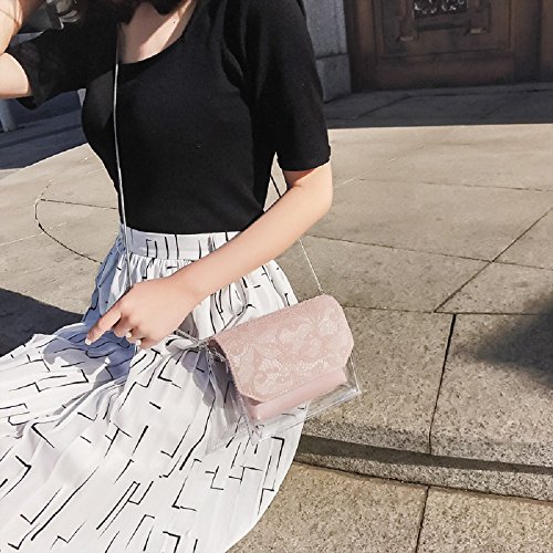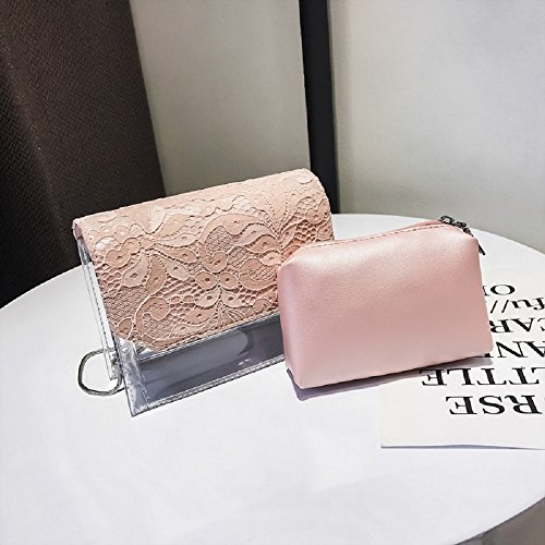 Onfashion Women's Transparent PVC PU Lace Floral Crossbody Bag Handbag Shoulder Bag 2 Pieces