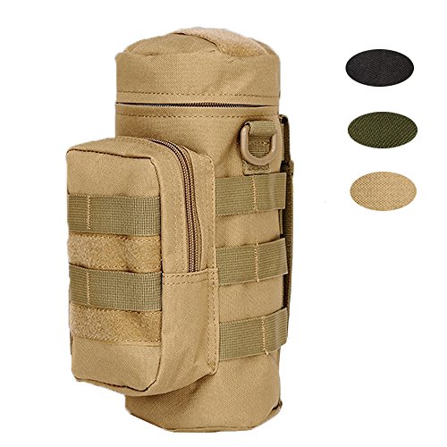 -. Feature : High Capacity H2O Hydration water pouch: One main zipper pouch can hold a bottle up to 11" high and 4" in diameter.Sturdy to carry large water bottle or heavy weight. Another zipper pocket can carry all sizes smart cell phones, navigator, portable battery, purse, key chain etd. / With Tactical Molle system water bottle carrier, convenient for you to hang other travel accessaries or small tactical bags, EDC pouches, tactical pens, flashlights, etd. The back molle webbing also perfect for hanging it on your tactical belt, tactical vest or military backpacks. igh and 4" in diameter.Sturdy to carry large water bottle or heavy weight. Another zipper pocket can carry all sizes smart cell phones, navigator, portable battery, purse, key chain etd. / Stylish and mordern military molle water bottle pouch, great application for your outdoor camping/hiking/running/riding/hunting / High quality 600D Polyester molle pouch , sturdy and durable, Unisex, waterproof and wear-resistance. / Lifetime guarantee and best 7/24 service for you. Don't like or any problem, 100% refund without worries.