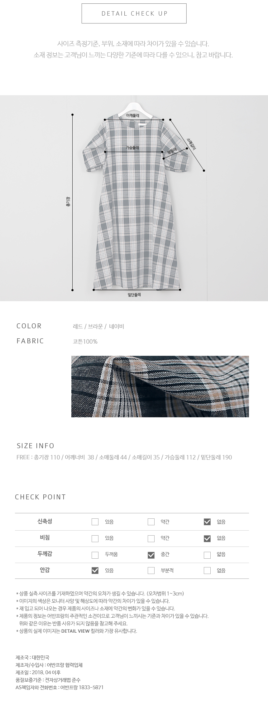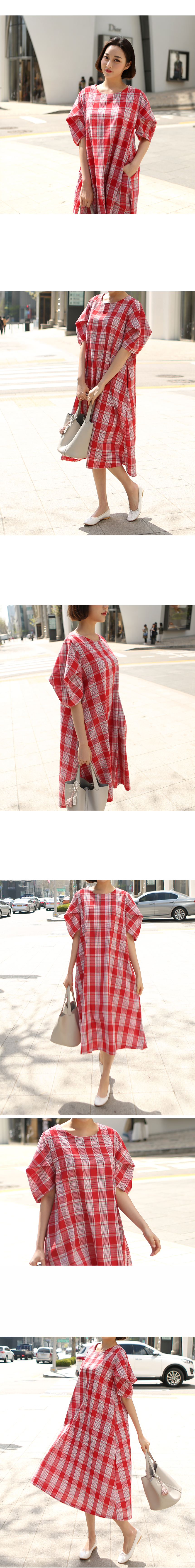 가볍고 네추럴한 질감의 코튼 100%의 소재로둥글게 종이접기하듯 라인이 잡힌 반달형의소매라인이 멋스럽고 A라인으로 퍼지는핏이 편안하면서도 슬림해보인답니다가슴선아래로 넓게 퍼지는 핏으로 편안한핏이지만 가슴선아래로 퍼지는 라인으로슬림하고 길어보이는 효과를 준답니다밋밋하지 않은 디자인과 상큼한 컬러의체크패턴으로 시선을 끄는 아이템이에요색상은 레드, 브라운, 네이비사이즈는 FREE 44~66반