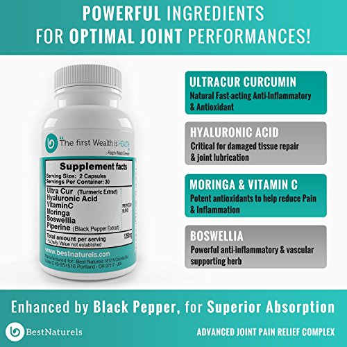 -. Feature : NATURAL JOINT PAIN RELIEF - With a mix of powerful and healthy ingredients, this UltraCur Curcumin complex naturally supports your joints and keeps them cushioned. / FAST ABSORBING, FAST ACTING - UltraCur combined with Whey Protein and Piperine, is scientifically proven to absorb quickly. As a result, most people who suffer from joint pain report seeing results faster. / SAFE & VERSATILE HIP & JOINT SUPPORT - This 1260mg Formulation provides powerful joint pain relief. Use it to provide support for painful joints, reduce stiffness or assist your recovery from workouts! / SUPPLEMENTS MADE TO THE HIGHEST STANDARDS - made in the USA under the strictest GMP certified standards. NO Preservatives, Allergens and fillers. Vegetarian friendly. / 100% MONEY BACK GUARANTEE: Your purchase is covered by our 60-day Full Money Back Guarantee, No questions asked!