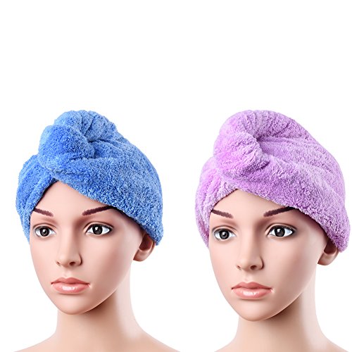 Uarter Hair Turban Towel Twist Wrap Fast Drying Absorbent Microfiber Dry Hair Cap for Bath, Spa, Makeup 23.4 9.8inch (2 Pack) Blue and Purple