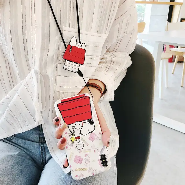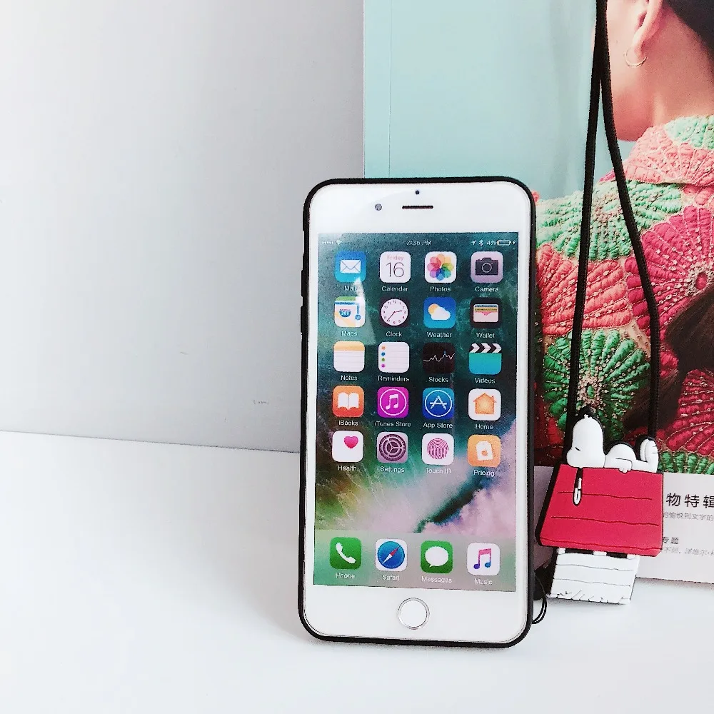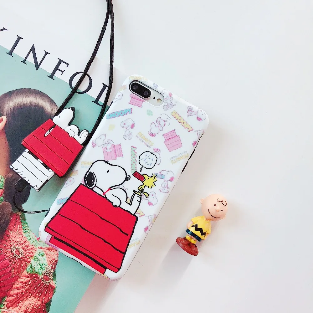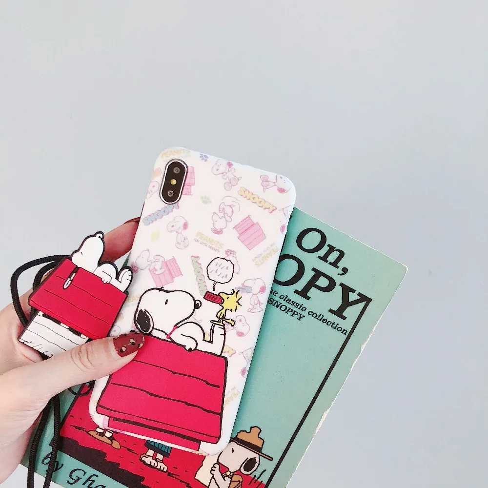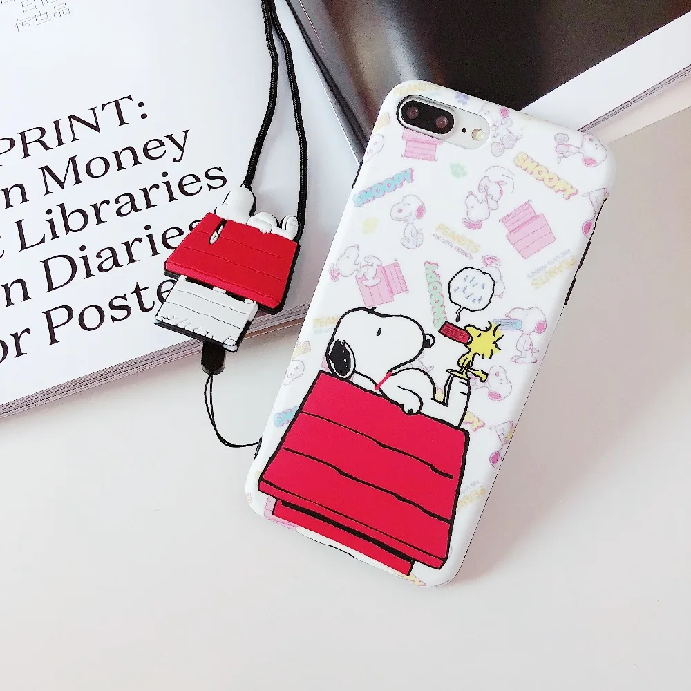 Features:Cute Cartoon 3D Snoopys Hanging Rope Matte Soft IMD Case