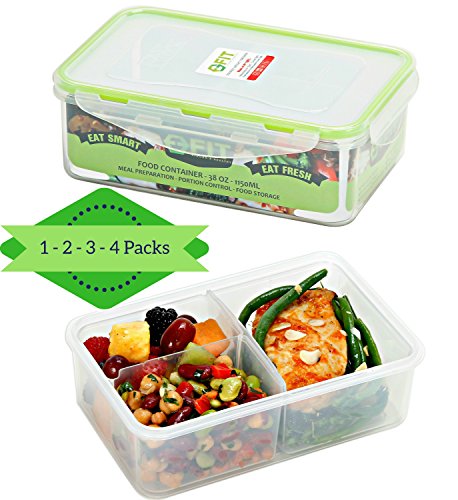 LIMITED TIME OFFER! HEALTHY LUNCH ON THE GO: Tired of spending tons of money on pre-cooked meals and restaurants? Pack healthy, homemade dishes in this rectangle, BPA Free MEAL PREP LUNCH BOX with Dividers, perfect for taking your MEALS and SNACKS to work, school, or on your business travels. Food storage container capacity: 38oz. Dimensions: 8" x 2.5" x 5". These lunch boxes are great for adults and kids.