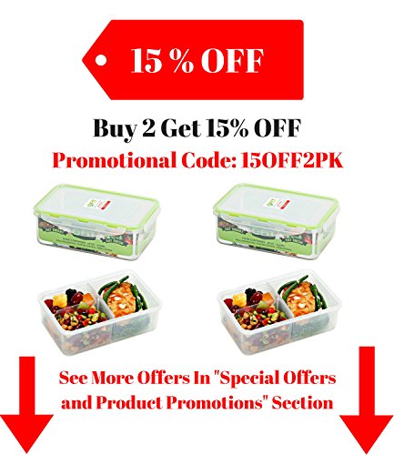 GET MORE AND SAVE MONEY: The more containers you buy, the more you save, so make sure you equip your kitchen with plenty of REUSABLE LUNCH BOXES. You and your family deserve to eat well for every meal, regardless of time constraints. They can even be used to store office and school supplies, hardware, and even pet food! USE CODE 15OFF2PK TO GET 15% OFF WHEN YOU BUY 2 or more PACKS OF 2 CONTAINERS