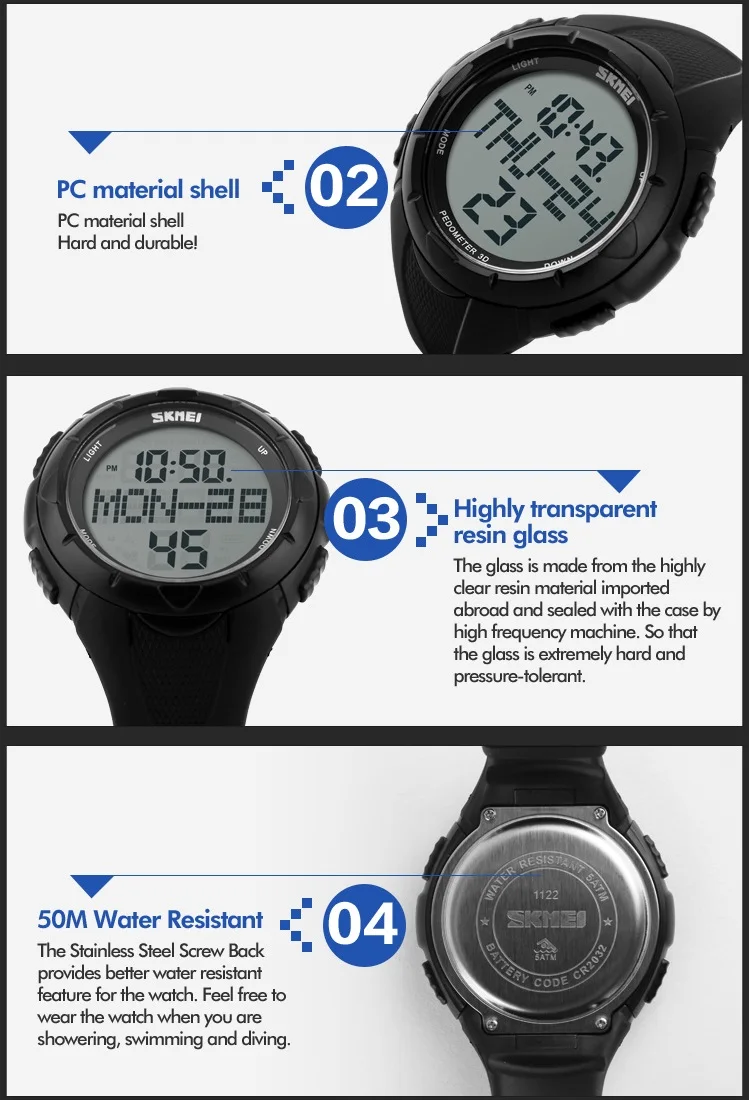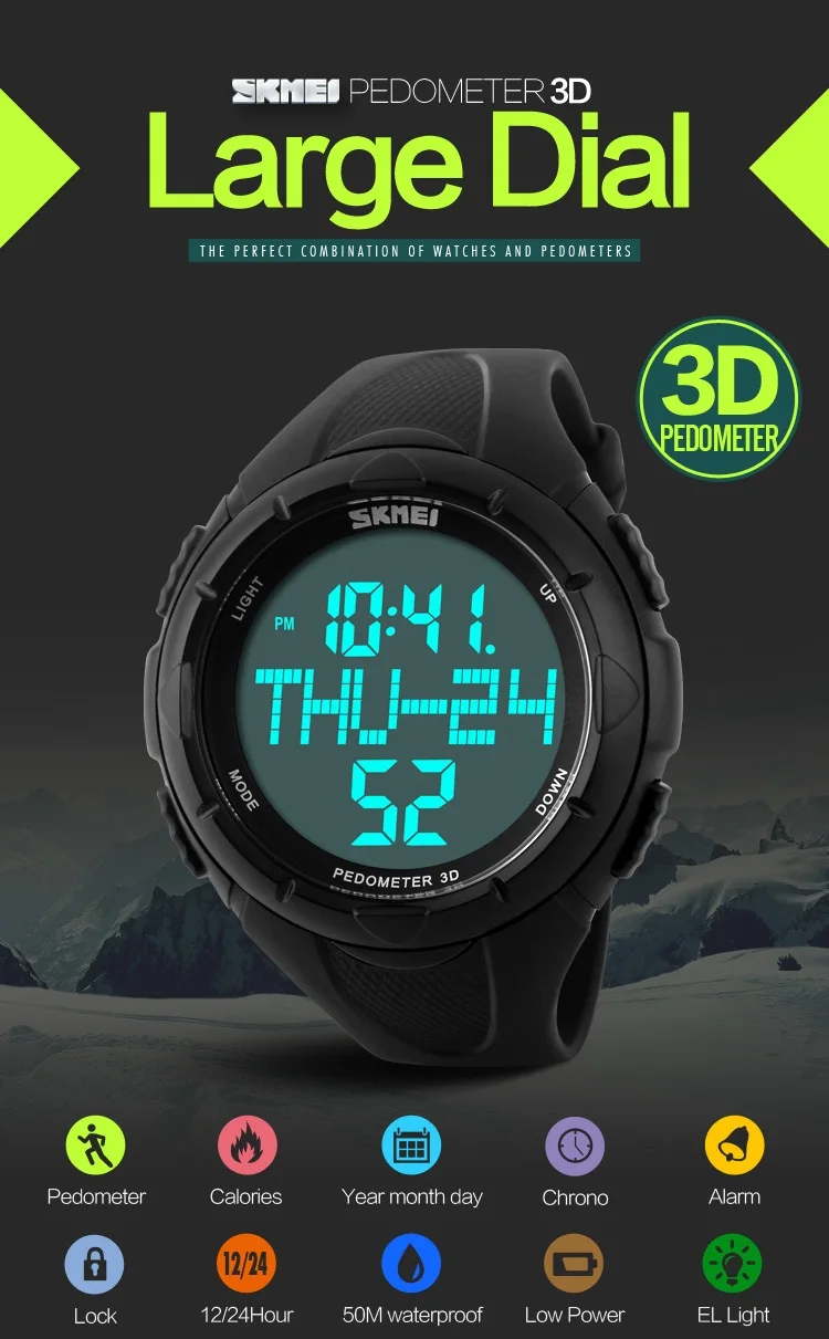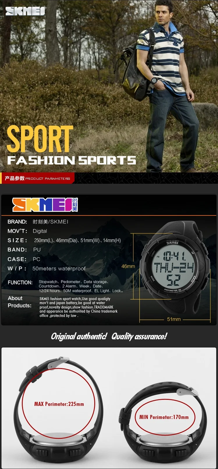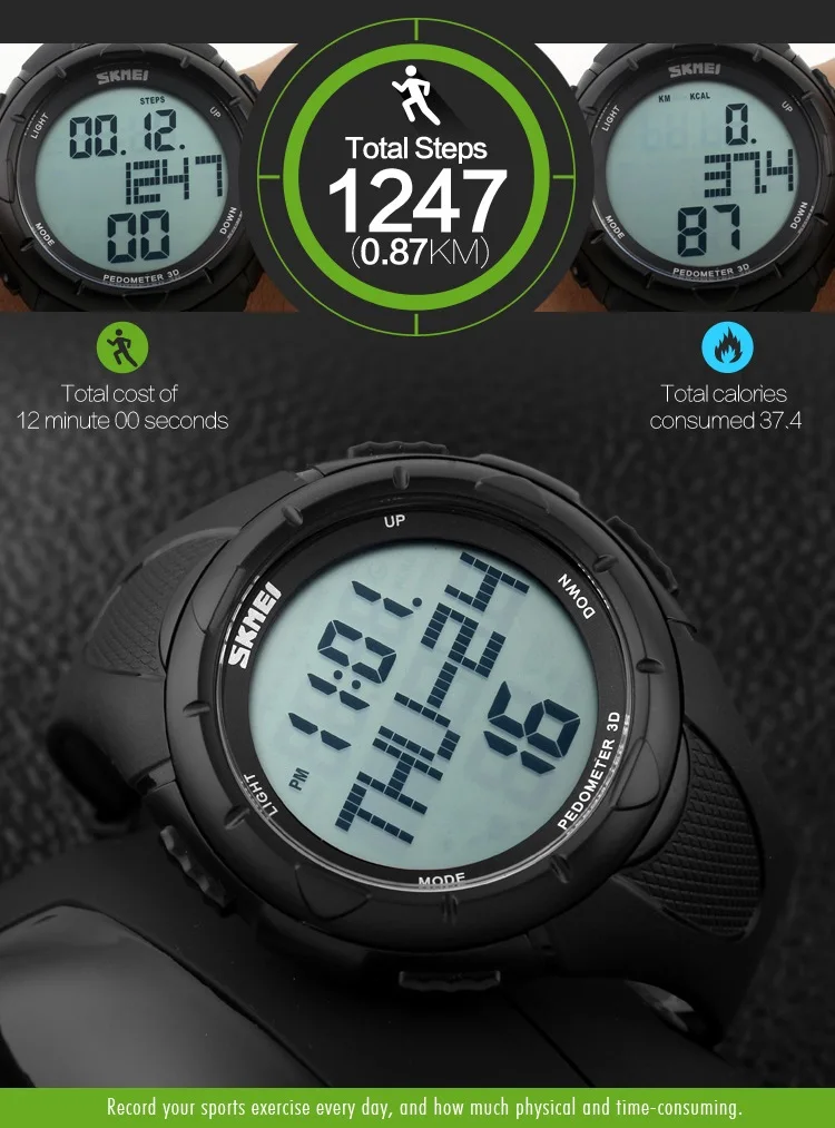 Feature:Alarm,Back Light,Water Resistant,Shock Resistant,Stop Watch,Complete Calendar,Chronograph,Auto Date,LED display