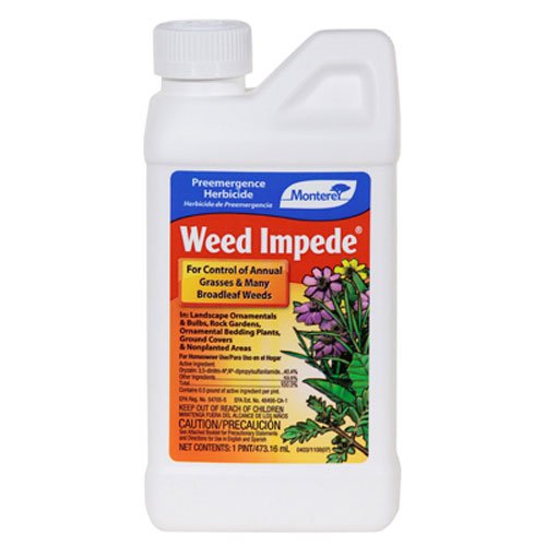 [Product Information]- Monterey Weed Impede 16oz A great pre-emergence herbicide for use on ornamentals, trees, roses, bulbs, ground covers, shrubs, rock gardens, driveways, and unplanted areas