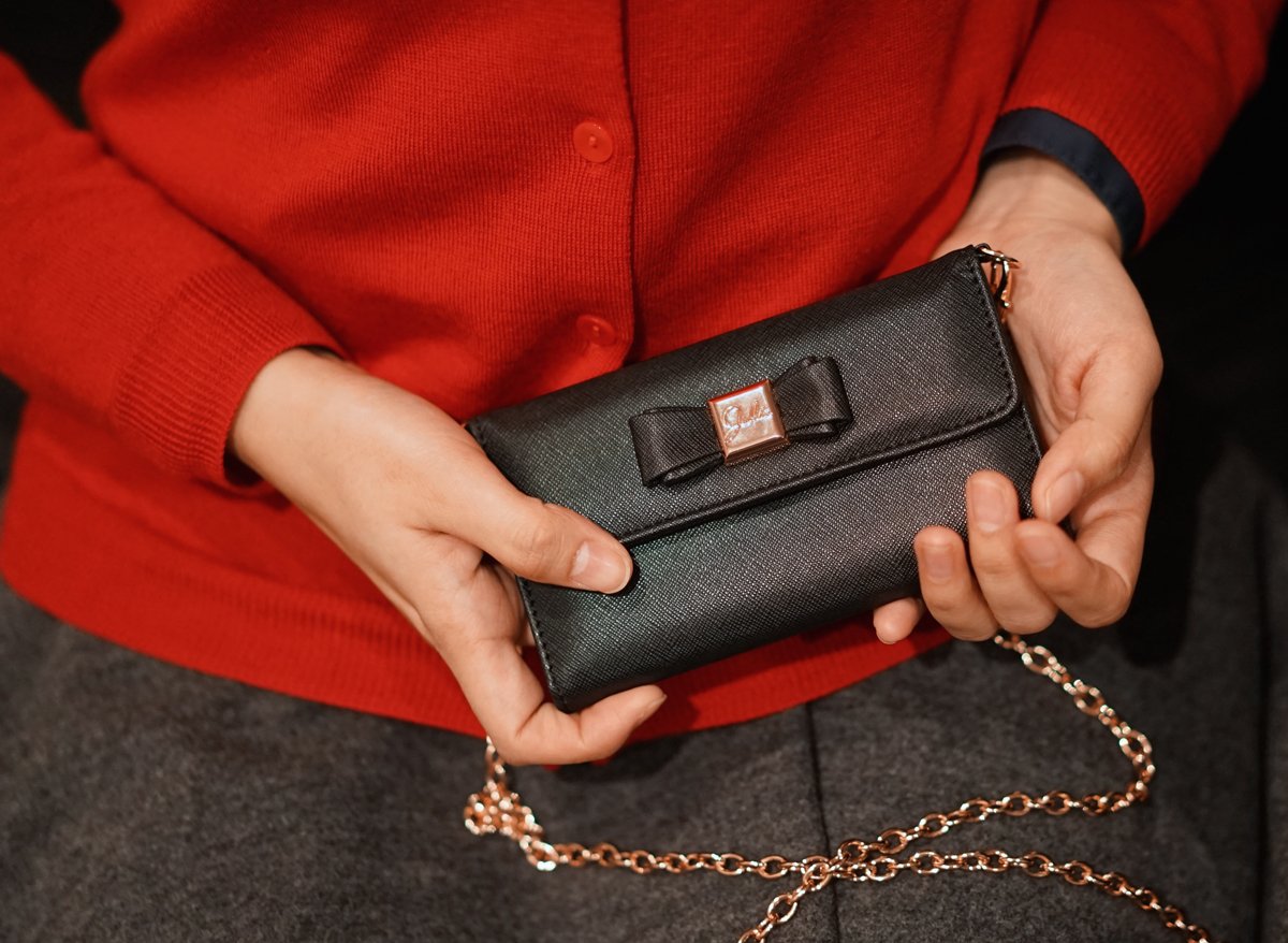 It is an iPhone case like a small pochette for women collaborated with iPhone case exhibition producer Yumi Hiromi.