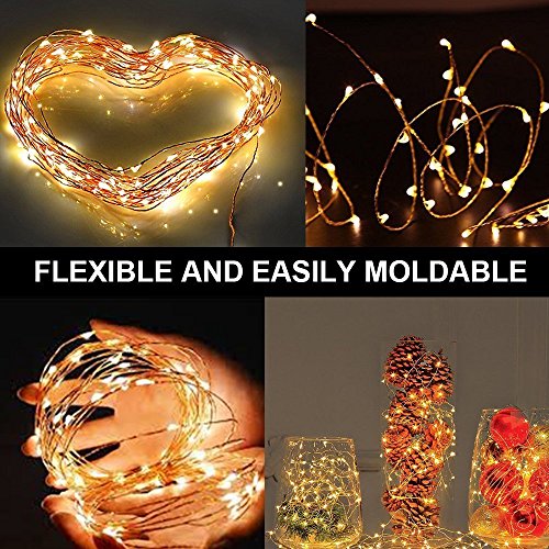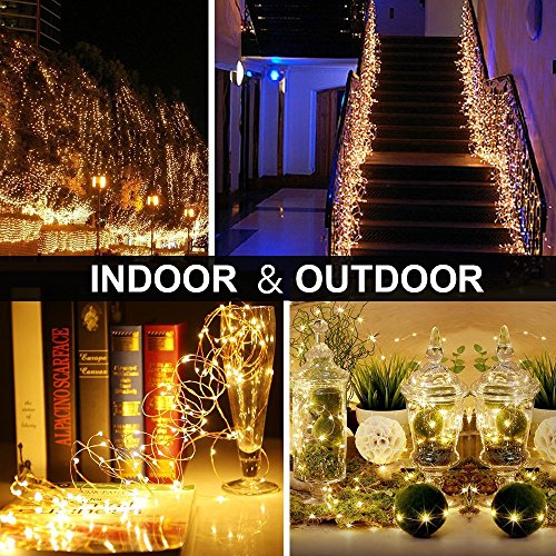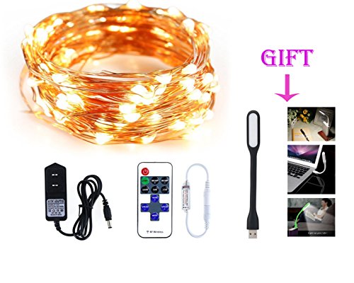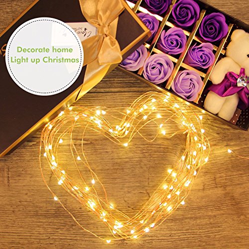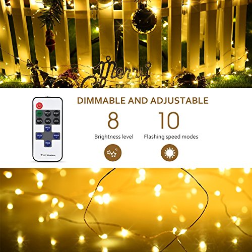 33ft 100 LED Starry String Lights with Remote Control,KNOWHOME Rope Lights Décor for Bedroom Weddings Family Festival School Party Dancing Bistro Hanging Umbrella Tents( Copper Wire Lights )