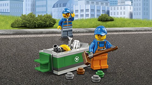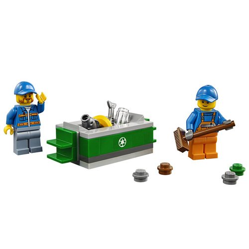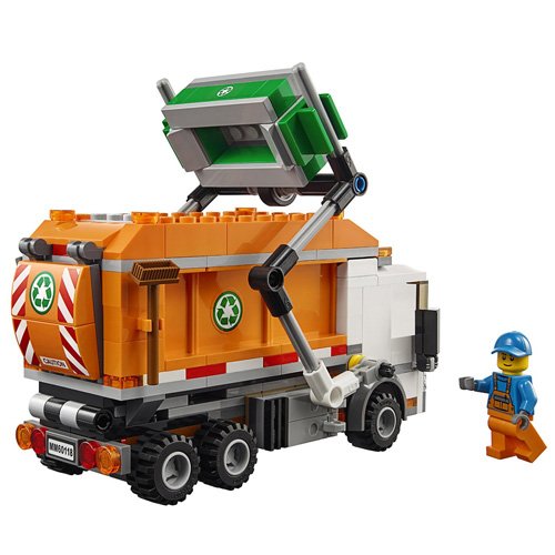 Product Description Clean up the city by emptying dumpsters behind the wheel of the LEGO City Garbage Truck, featuring a lift for picking up containers, trash, container that tilts to open and empty, a broom and other accessories. Includes 2 minifigures: a driver and a garbage truck helper. Safety Warning not appropriate for children under the age of 3 Includes 2 minifigures: a driver and a garbage truck helper Features a Garbage Truck with a functional lift that moves up and down, and a container that tilts and opens to empty out the garbage Pick up the container with the truck liftFeature