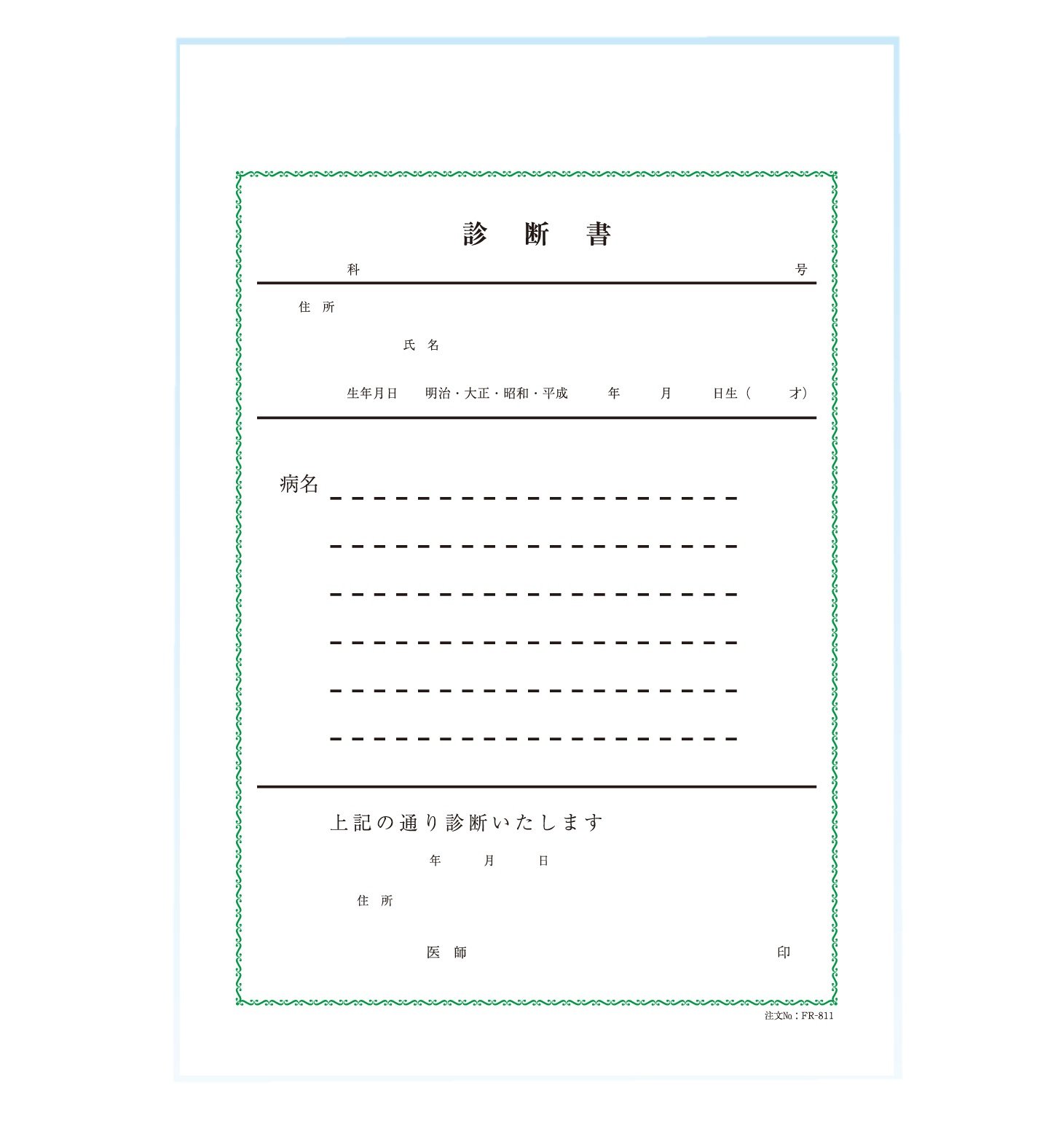 First rate medical certificate (horizontal writing type) FR-811 50 copying with underlay
