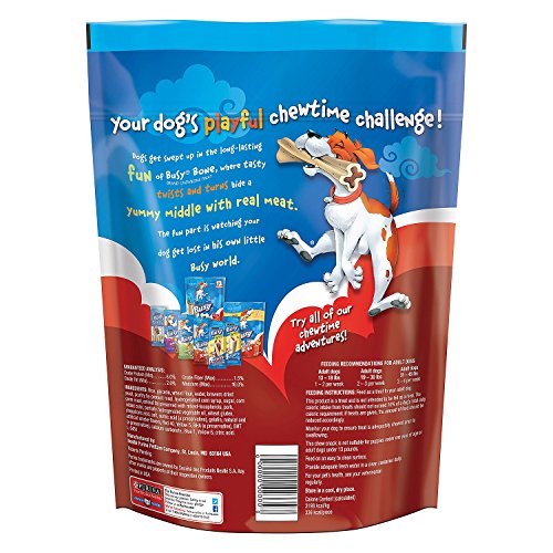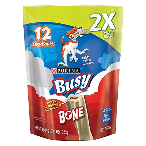 -. Binding : Misc. -. Brand : Purina -. EAN : 0038100176059 -. Feature : The original Busy Bone chew / Made with real meat in the middle for the ultimate reward / Long-lasting exterior with a twisted shape for more chewing fun / A playful chewtime adventure / The perfect size for small/medium dogs -. Label : Nestle Purina PetCare Company -. Manufacturer : Nestle Purina PetCare Company -. PackageQuantity : 1 -. ProductGroup : Pet Products -. ProductTypeName : HOME -. Publisher : Nestle Purina PetCare Company -. Studio : Nestle Purina PetCare Company -. Title : Purina Busy Bone Small/Medium Dog Treats 43 oz. 12 ct. Pouch -. UPC : 038100176059