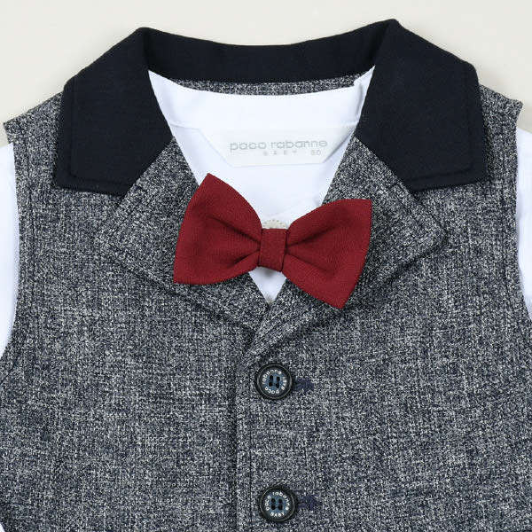 - 모던하고 깔끔한 조끼를 겹쳐 디자인하였으며, 신축성이 좋은 바지는 기저귀를 하는 아가들이 편하게 입을 수 있습니다.