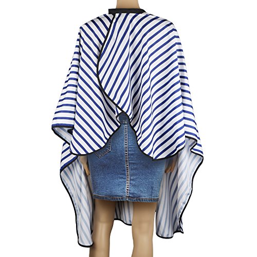Segbeauty Blue Striped Hair Cutting Cape for Salon, Waterproof Hairdressing Gown 4.5" Hook&Loop Closure Make-up Cape, Silky Long Cloth Wrap for Barber