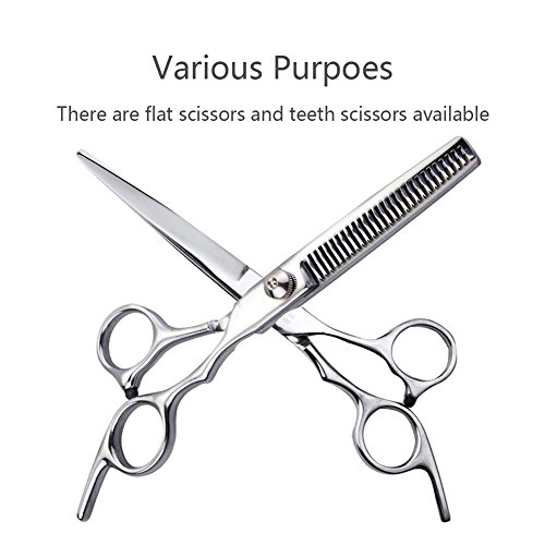 - "❤ Various Purpoes - There are flat scissors and teeth scissors available, suitable for home and hair salons, such as children, adult hair cutting, bangs cutting, hair thinning, etc. "