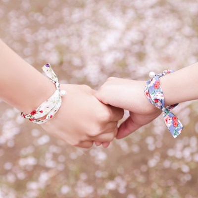 하늘하늘 쉬폰소재의 팔찌입니다.플라워 패턴의 쉬폰 원단의 팔찌에 진주가 더해져 살랑살랑 봄느낌을 연출해준답니다!또한 매듭포인트가 있어서 귀엽고 발랄한 감성을 느낄 수 있는 팔찌에요.매듭을 양쪽에서 당겨주기만 하면 간편하게