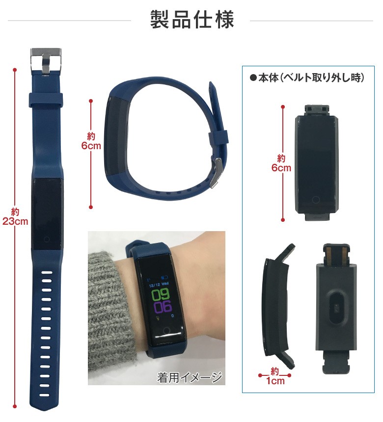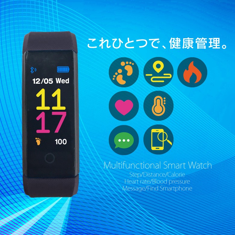| 商品説明 | 時計・歩数・心拍数・血圧測定・着信通知などの機能を兼ね備えた多機能スマートウォッチです。生活防水仕様なので安心して普段使いできます。 |