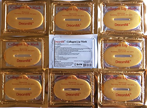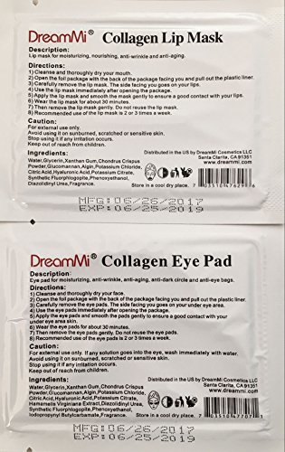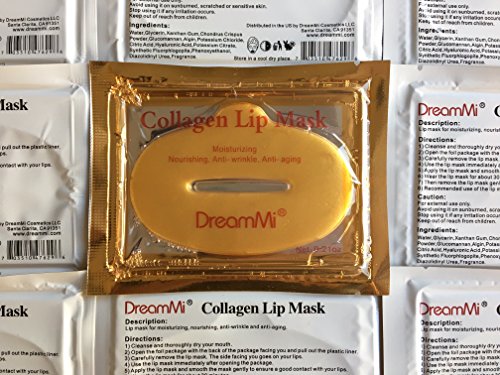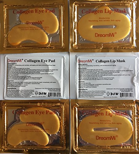 DreamMi ( 10+10 ) Gold Collagen Gel Lip Mask + under Eye Gel Treatment Pad patch Sheet, Moisturizing, Nourishing, Anti Wrinkle, Anti Aging, Anti Dark Circle and Anti Eye Bags, Cooling Remove Puffy
