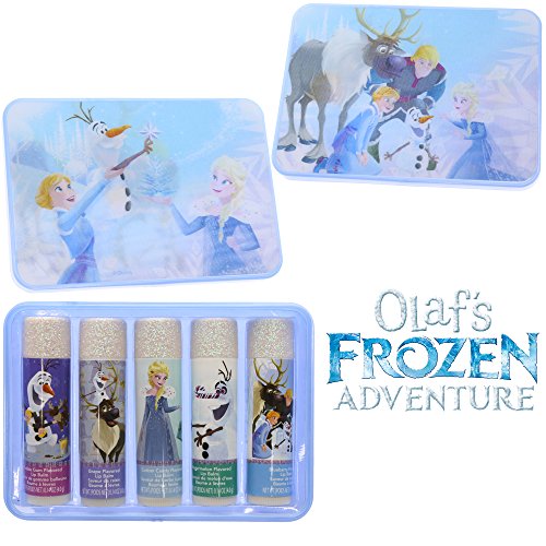 Townley Girl Frozen Sparkly Lip Balm For Girls, 5 pack with Decorative Tin