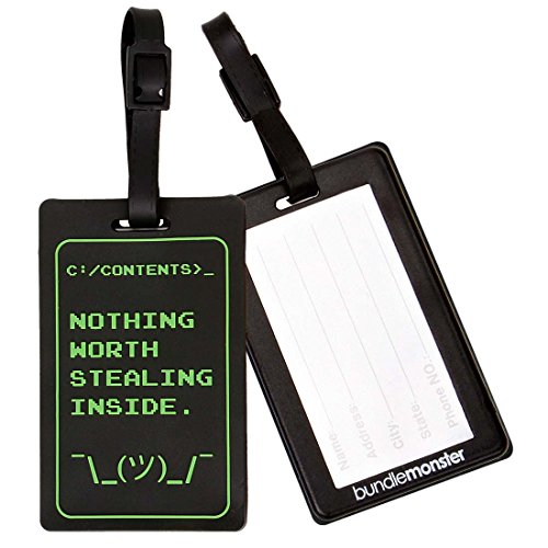 Studio : Bundle Monster Publisher : Bundle Monster Product Description Make all of your bags quickly and easily recognizable with these mixed design luggage tags. Each set comes with 4 unique tags designed exclusively by Bundle Monster. The ID tags are made with durable silicone and feature plastic windows which display important information like name, address, and phone number. Pop the loop strap (2.5 inch hang) over the peg to securely fasten the ID tag to suitcases, backpacks, and more! A cute and fun way to identify your items and help lost items get back to you. View selection menu carefully to check what you are ordering. Not all sets are the same; please review images and description for more information. *NOTE*: Due to differences between monitor displays, actual color may vary slightly from image. Bundle Monster is a registered trademark of Remi Collections LLC and is exclusively distributed by Bundle Monster. Bundle Monster trademark is protected by Trademark Law. 0