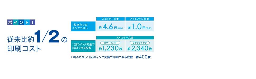 *インクコストは従来モデルの約54.1%。2016年9月インク価格改定前における比較は約56.8%。2015年BASICシリーズの1枚あたりのインクコスト(A4カラー文書)と比較して算出。